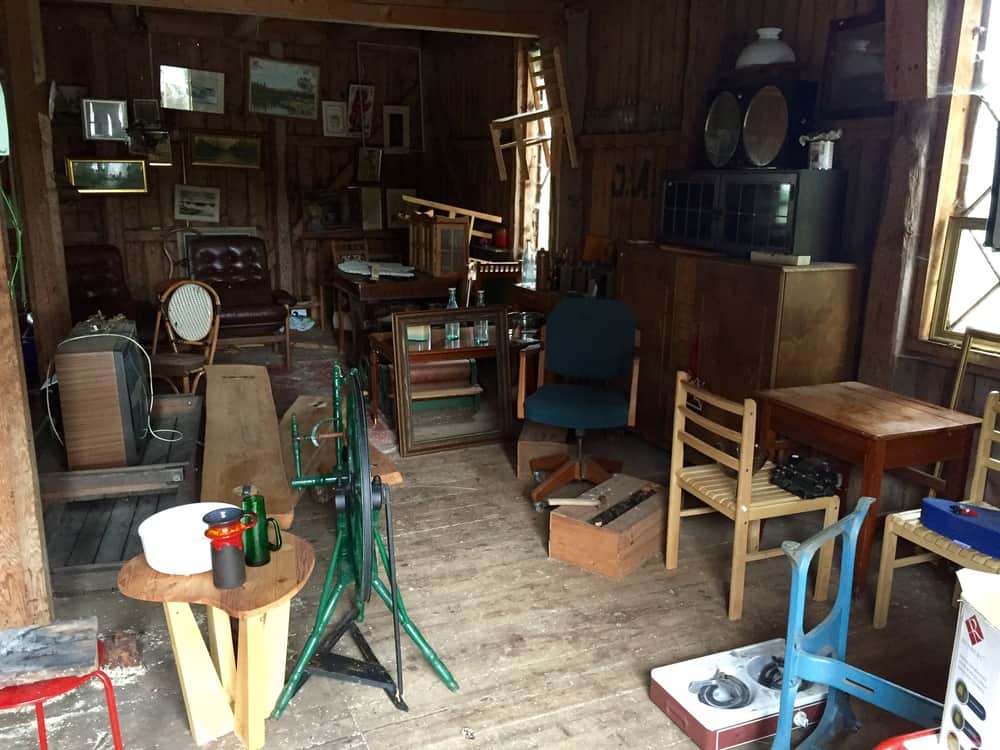 Passend dazu dann auch endlich unser erster Loppis nebenan. Für alle Nicht-Schwedenkenner: Loppis-Schilder findet man in Schweden an allen Ecken und Enden. Ich dachte zunächst noch, dass es sich um kleine Tante-Emma-Lädchen handele. Aber weit gefehlt! Es ist eine Art Mini-Flohmarkt. Oder das, was in Amerika ein Garage-Sale wäre. Oder einfach nur eine Rumpelkammer mit Zeugs. Muss man mal gesehen haben. Muss man aber nichts von kaufen.