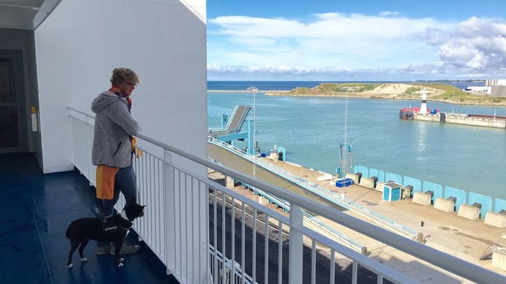 An Bord kennen wir uns daher auch perfekt aus und steuern erst mal unsere Kabine an, um uns häuslich einzurichten. Erwähnte ich schon, dass wir ab sofort Kabinen-Fans sind? Nach dem Abladen unserer Sachen gehen wir aber wieder an Deck und genießen bei Sonnenschein den letzten Blick auf den Trelleborger Hafen. Und bis auf den kleinen Janosch, der begeistert in die Pfützen an Deck springt und Annette und mich mit einer Fontäne beglückt, läuft alles nach Plan. Denn der für die Überfahrt angekündigte Regen und Sturm lässt sich nirgendwo blicken, so dass wir uns auf dem Sonnendeck niederlassen und wieder kreuzfahren.