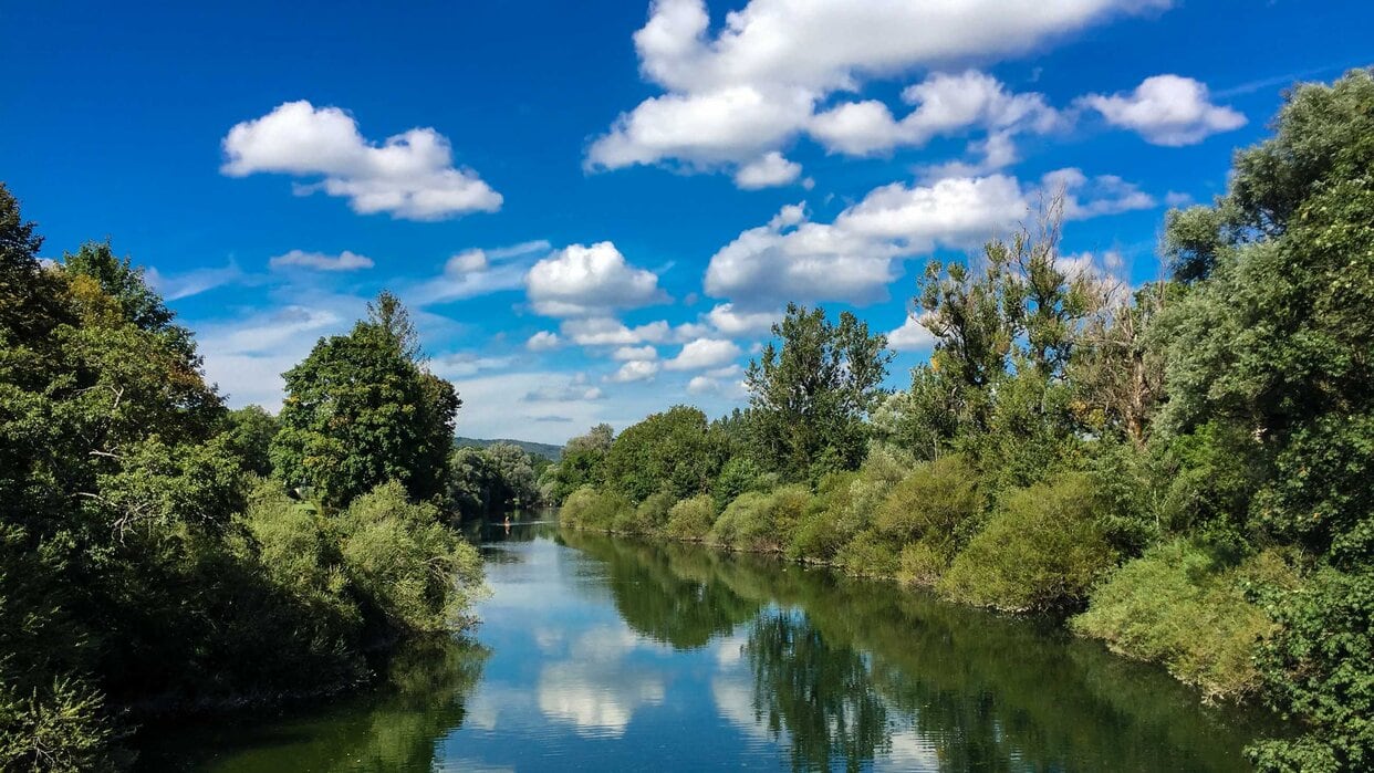 Lediglich unser Besuch bei der Fromagerie, wo wir uns mit leckerem Jura-Käse und Schinken eindecken, unterbricht den entspannten Tag. Ansonsten geht es hier echt zu, als würden die Uhren langsamer gehen. Auch der Fluß, die Ain, fließt praktisch unmerklich dahin und das gelegentliche Kreischen der vorbeifahrenden Kanuten ist wohl eher zum Vertreiben der Müdigkeit, als zur Warnung vor Gefahren gedacht.