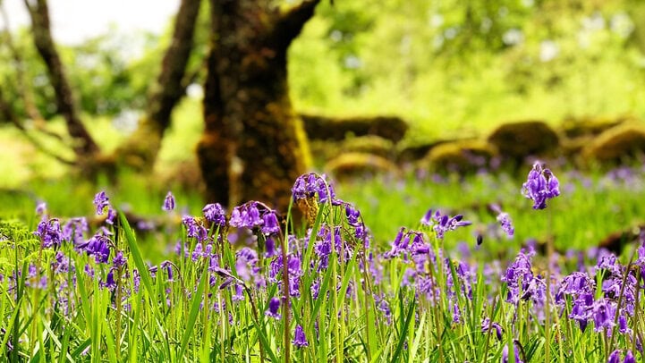 Das sieht mit seinen an allen Ecken und Enden bemoosten Mauern, Bäumen und Böden umgeben von Tausenden von Bluebells herrlich verwunschen aus.