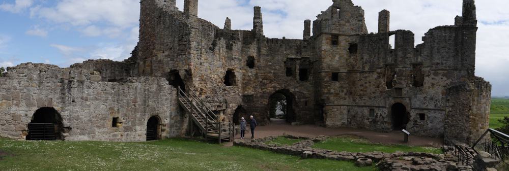 Am Tantallon Castle warten wir den nächsten Schauer bei Kaffee und Keksen ab und machen uns dann bei schönstem Sonnenschein auf den Weg zu diesem wieder mal anders ungewöhnlichen Castle. Das besondere hierbei: Von vorne sieht es mächtig und bedeutend aus. Dahinter ist aber alles reichlich kaputt und größtenteils nicht mehr vorhanden. Stattdessen gibt es eine große Rasenfläche und dann: nur noch das Meer. Was muss das früher für ein genialer Ort gewesen sein!