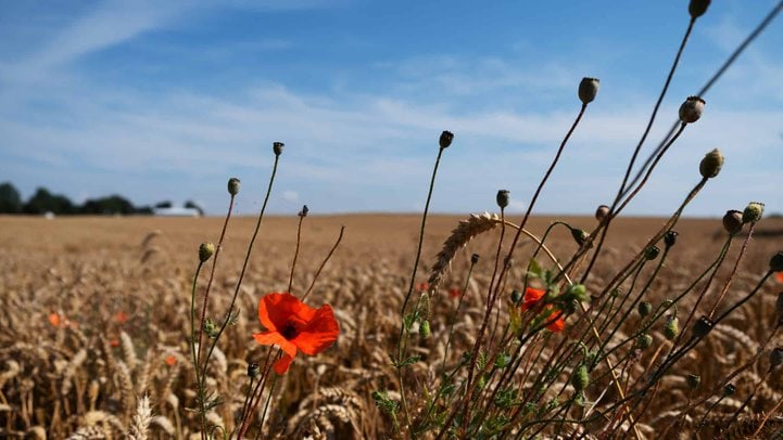 Auch der Weg mitten durch die Getreidefelder ist geradezu ein Inbegriff von Sommer. Warm und gelb ist es rund um uns. Und ein paar Mohn- und Kornblumensprenkler gibt es gratis dazu.