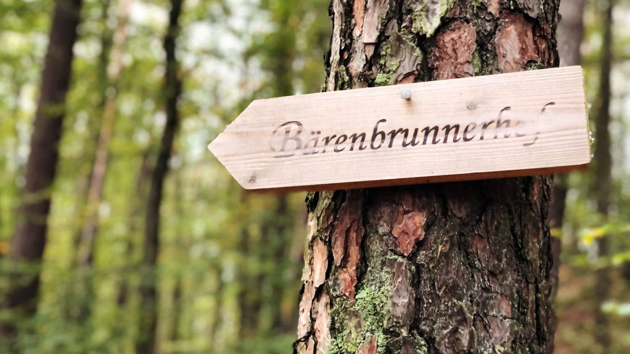 Wir fahren die paar Kilometer zum Bärenbrunnerhof etwas östlich von Dahn. Die Straße zum Hof ist vielversprechend. Eine sehr schottisch anmutende Single-Track-Road. Vor dem Hof allerdings wenig womofreundliche Schilder, auf denen mehrfach darauf hingewiesen wird, dass Übernachten am Hof keine Option sei.