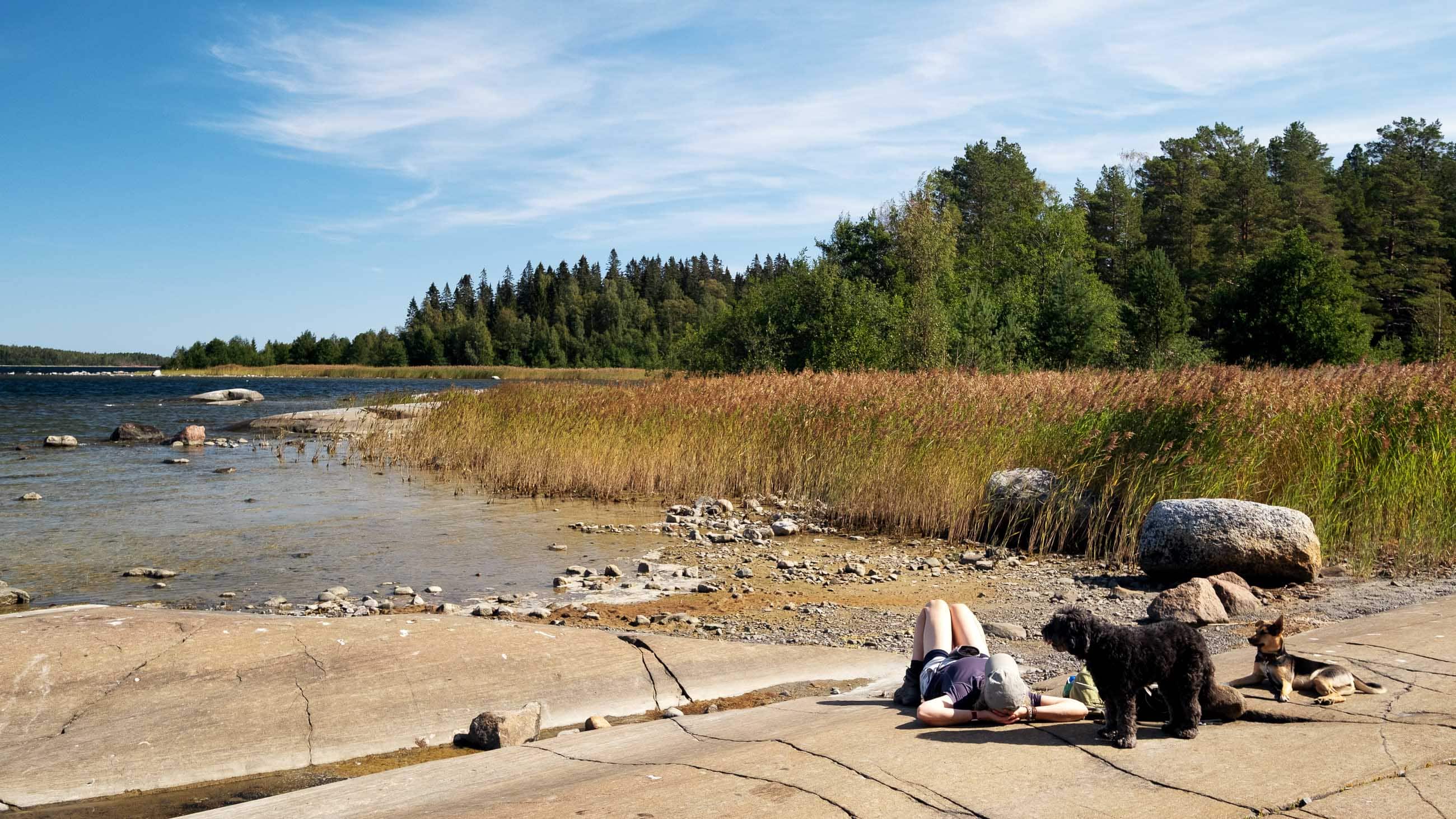 Anschließend finden wir eine Bucht mit den typischen, breiten flachen Schärensteinen, die sich hervorragend für eine Picknickpause eignen.