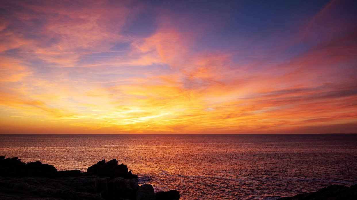 Denn als würde die Bretagne klarmachen wollen, wer hier landschaftsmäßig die Hosen anhat, serviert sie uns einen von diesen einmalig schönen und auch nur ganz, ganz leicht kitschigen Sonnenuntergängen, während sich unter uns die Wellen auftürmen und krachend auf die Felsküste klatschen.