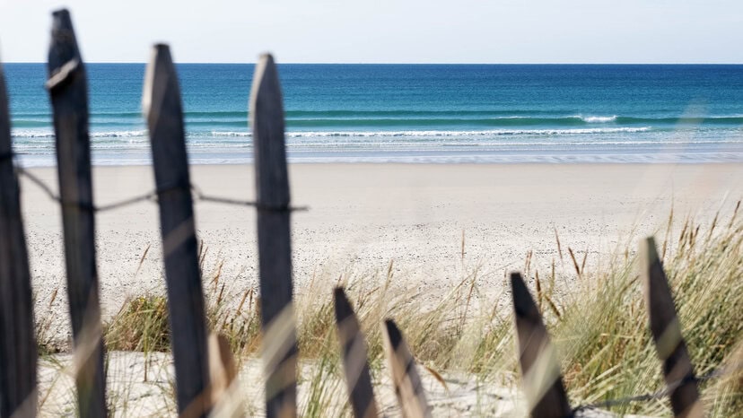 Als wir von der Chapelle hinunter zum Plage de Tronoen fahren, sind wir mehr als beeindruckt. Denn die Bucht von Audierne ist nichts weiter als ein kilometerlanger feiner Sandstrand vor unfassbar blauem Meer mit (am heutigen Tage) sanften Wellen, die in die Bucht laufen.