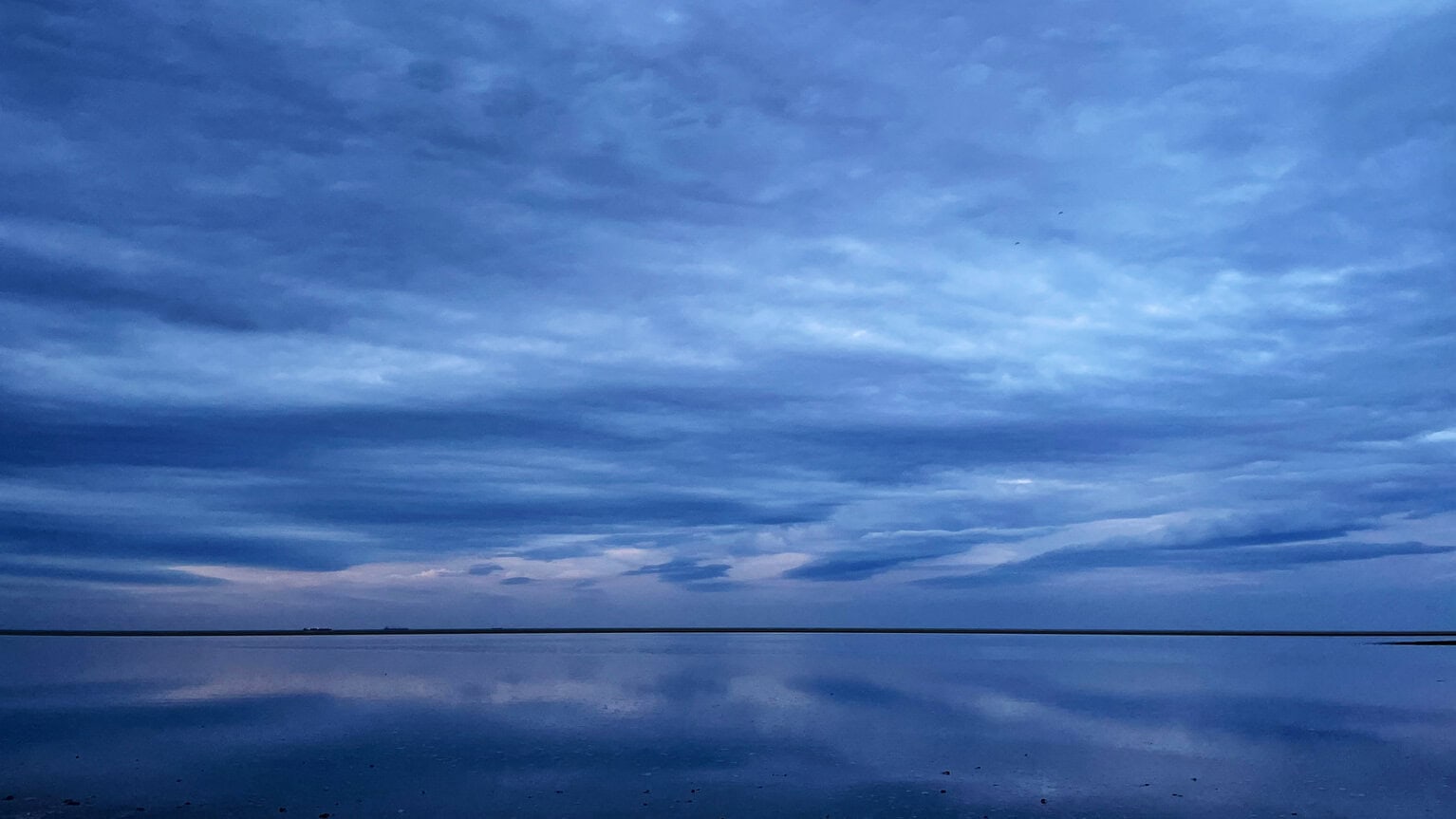 Annette dreht abends noch mal eine Runde mit den Hunden und vergewissert sich, dass hier alles trocken bleibt. Dabei schießt sie dann noch das surreale Foto des Tages, das diesen besonderen Ort perfekt einfängt. Das Wort des Tages ist: Unendlich.