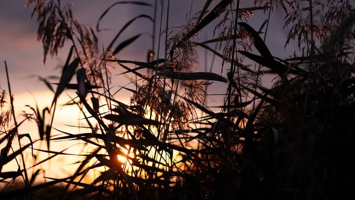 Ich mache mich auf den Weg zum See und komme zu einer kleinen Anlegestelle. Leider hat man nicht den ganz weiten Blick auf den See, den ich mir hier erhofft habe, da das Ufer wieder mal verschilft ist. Aber andererseits gibt das dann auch ganz reizvolle Bilder ab. Wir haben schon schlechtere Orte für einen Sonnenuntergang gehabt.