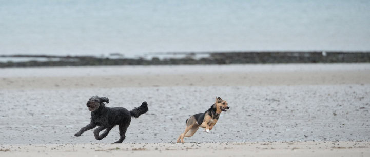 In Bernières-sur-Mer finden wir einen Platz direkt am Meer und können den Hunden den versprochenen Strand bieten. Hurra!