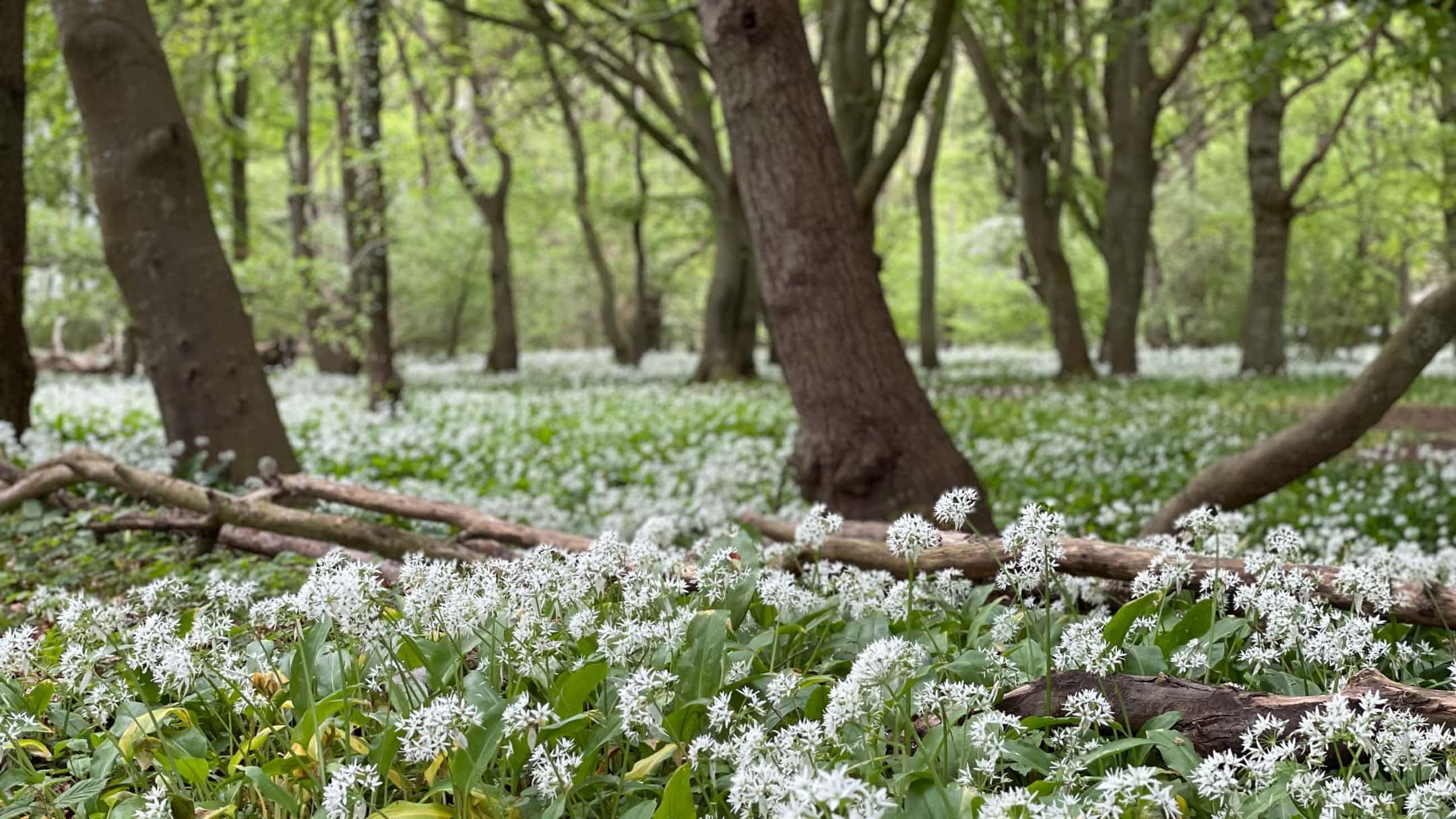 So richtig begeistert sind wir aber fast noch mehr von den Massen an Bärlauch, die gerade zu dieser Zeit blühen und einen weißen Teppich unter die Bäume legen. Wunderschön!