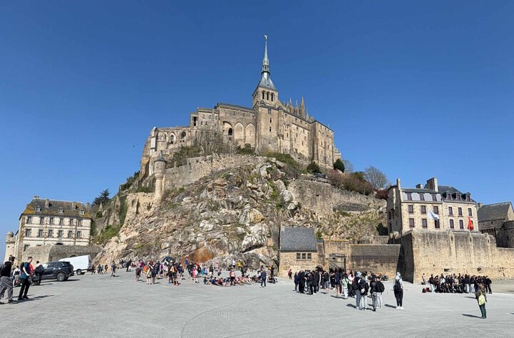 Aber mit jedem Meter, den wir dem Wahrzeichen der Bucht näher kommen, wird es voller. Auf dem Platz vor dem Eingang hinauf zum Klosterberg ist dann schon ordentlich was los. Mehrere Schulklassen und Klassenfahrten haben sich hier versammelt und es herrscht das übliche aufgeregte Geschnatter der Kinder und Jugendlichen.